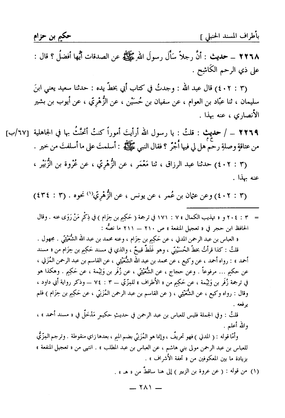 2269 -[خ م] حديث: قلت يا رسول الله أرأيت أمورا كنت أتحنث بها في الجاهلية من عتاقة وصلة رحم هل لي فيها أجر؟ فقال النبي صَلَّى اللَّهُ عَلَيْهِ وَسَلَّمَ أسلمت على ما أسلفت من خير (3: 402) حدثنا عبد الرزاق ثنا معمر عن الزهري عن عروة بن الزبير عنه بهذا (3: 402) وعن عثمان بن عمر عن يونس عن الزهري نحوه -[282]- (3: 434) قرئ على سفيان سمعت هشاما عن أبيه عنه قال: أعتقت في الجاهلية أربعين محررا فقال مثله
