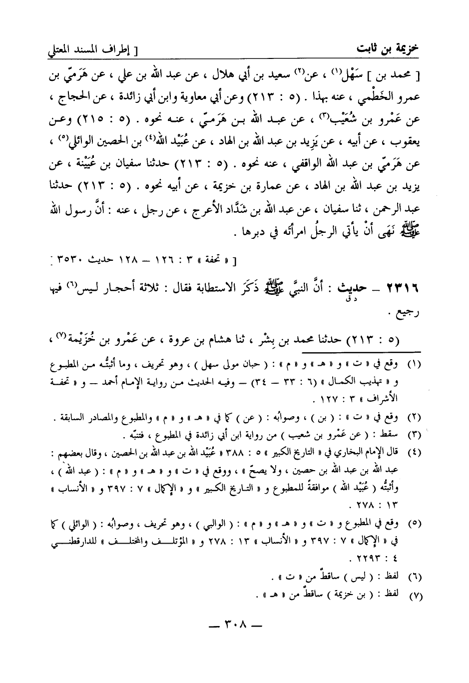 2316 -[د ق] حديث: أن النبي صَلَّى اللَّهُ عَلَيْهِ وَسَلَّمَ ذكر الاستطابة فقال: ثلاثة أحجار ليس فيها رجيع (5: 213) حدثنا محمد بن بشر ثنا هشام بن عروة عن عمرو بن خزيمة -[309]- عن عمارة بن خزيمة عنه بهذا (5: 214) وعن ابن نمير عن هشام مثله (5: 213) وعن وكيع عن هشام عن أبي خزيمة عن عمارة نحوه (5: 215) وعن يحيى عن هشام عن رجل عن عمارة نحوه (5: 215) وعن هشام عن أبيه مرسل