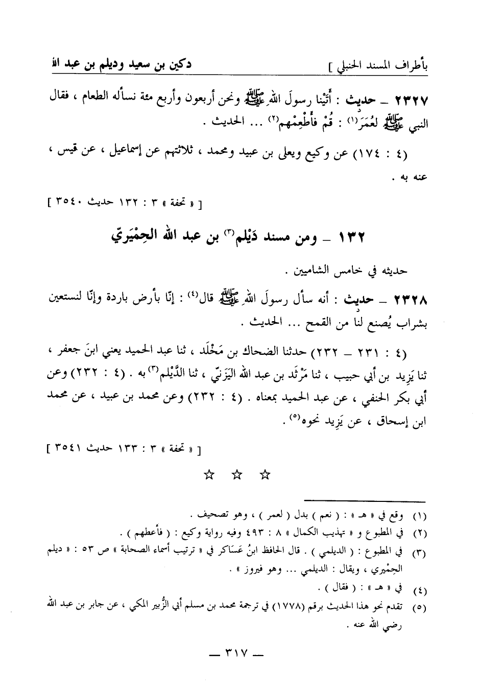 2328 -[د] حديث: أنه سأل رسول الله صَلَّى اللَّهُ عَلَيْهِ وَسَلَّمَ قال: إنا بأرض باردة وإنا لنستعين بشراب يصنع لنا من القمح ... ... . الحديث (4: 231 - 232) حدثنا الضحاك بن مخلد ثنا عبد الحميد يعني ابن جعفر ثنا يزيد بن أبي حبيب ثنا مرثد بن عبد الله اليزني ثنا الديلم به (4: 232) وعن أبي بكر الحنفي عن عبد الحميد بمعناه (4: 232) وعن محمد بن عبيد عن محمد بن إسحاق عن يزيد نحوه