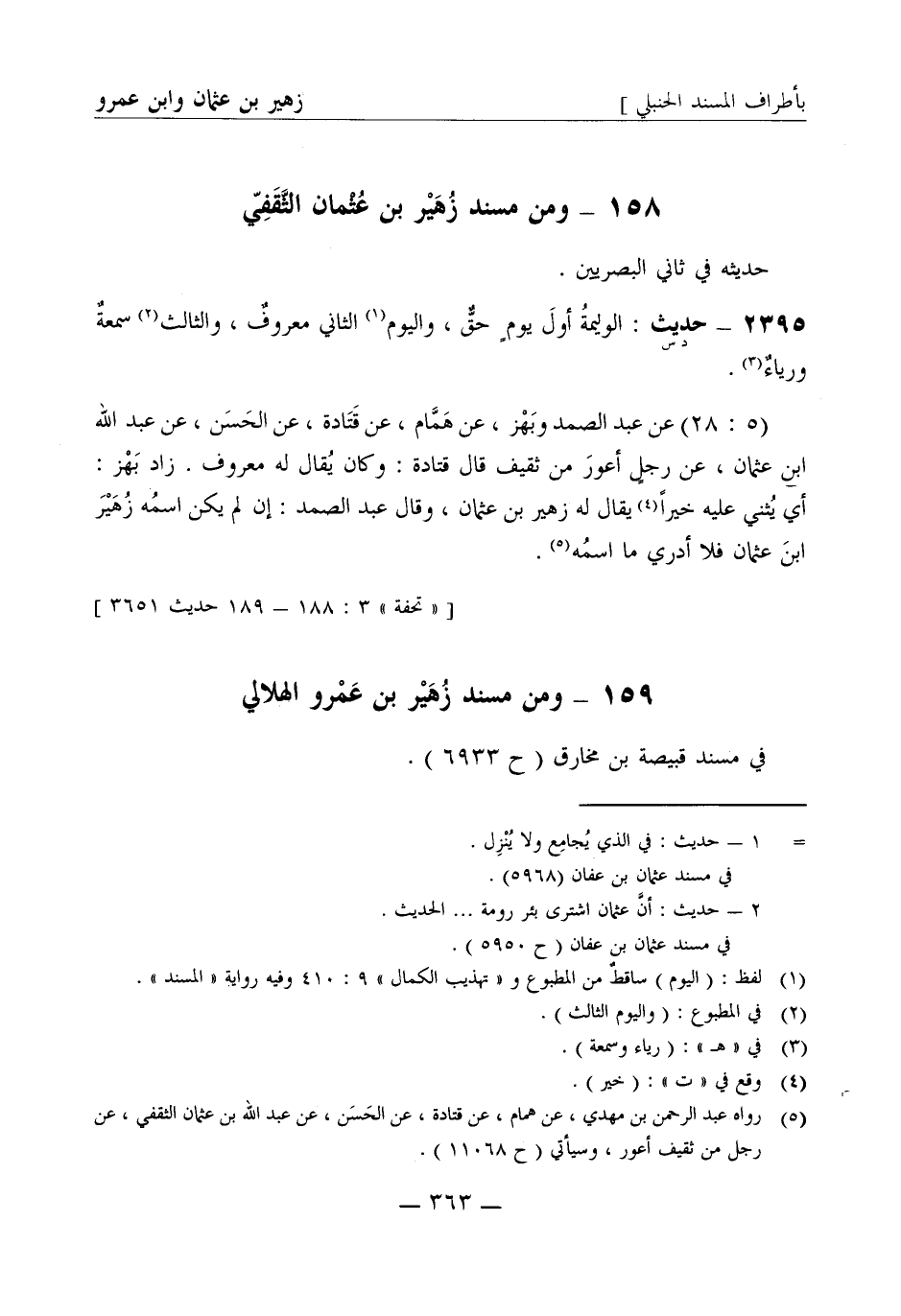 ومن مسند زهير بن عثمان الثقفي حديثه في ثاني البصريين