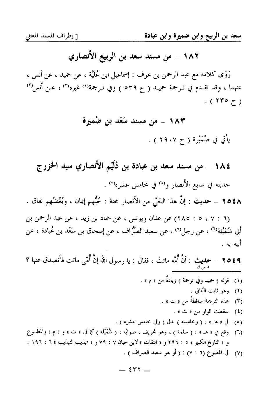من مسند سعد بن الربيع الأنصاري روى كلامه مع عبد الرحمن بن عوف إسماعيل ابن علية عن حميد عن أنس عنهما وقد تقدم في ترجمة حميد (ح 539) وفي ترجمة غيره عن أنس (ح 235)