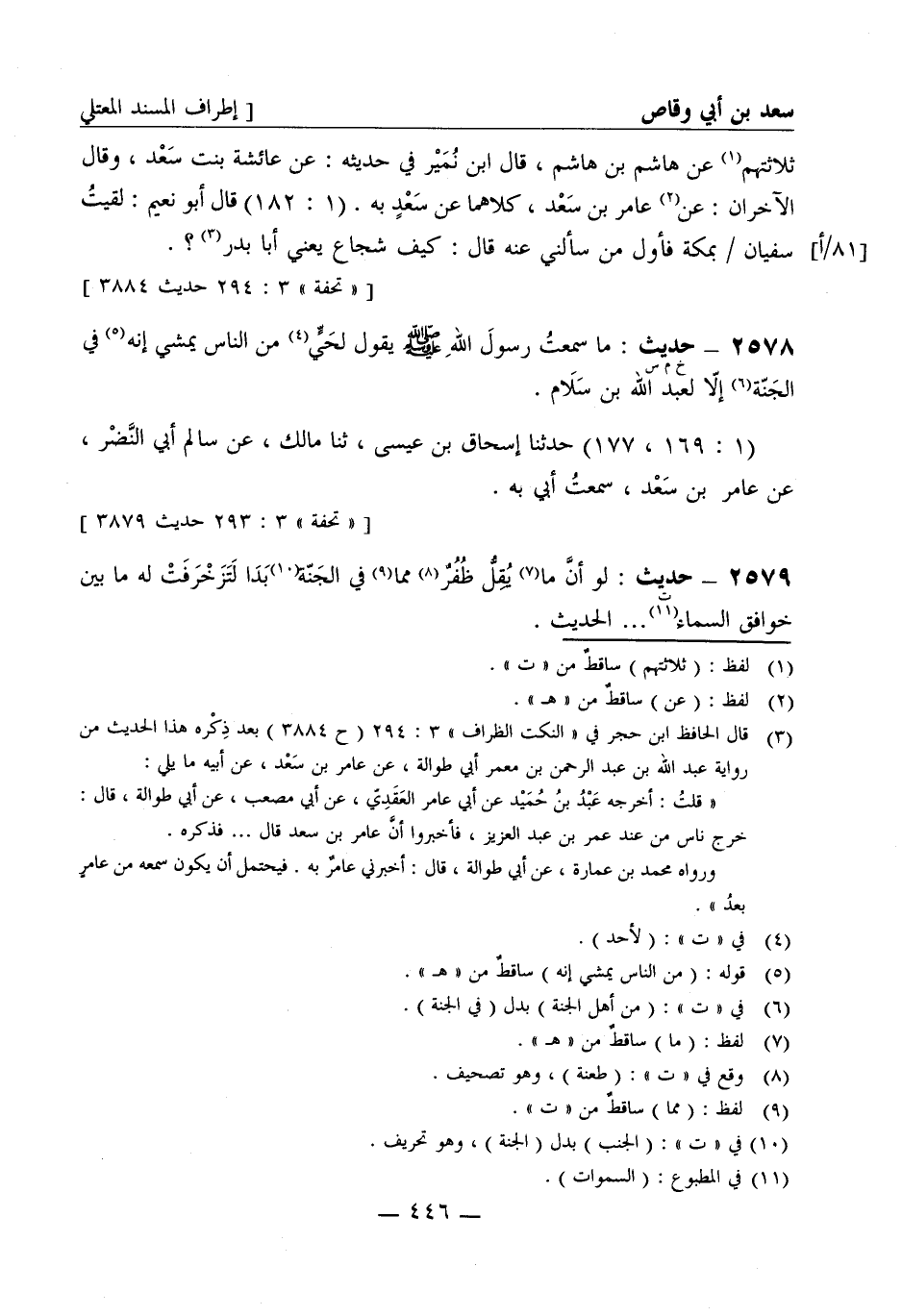 2578 -[خ م س] حديث: ما سمعت رسول الله صَلَّى اللَّهُ عَلَيْهِ وَسَلَّمَ يقول لحي من الناس يمشي إنه في الجنة إلا لعبد الله بن سلام (1: 169، 177) حدثنا إسحاق بن عيسى ثنا مالك عن سالم أبي النضر عن عامر بن سعد سمعت أبي به