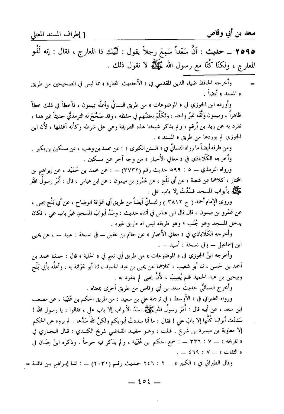 2595 - حديث: أن سعدا سمع رجلا يقول لبيك ذا المعارج فقال إنه لذو المعارج ولكنا كنا مع رسول الله صَلَّى اللَّهُ عَلَيْهِ وَسَلَّمَ لا نقول ذلك -[455]- (1: 172) حدثنا يحيى عن ابن عجلان عن عبد الله بن أبي سلمة بهذا