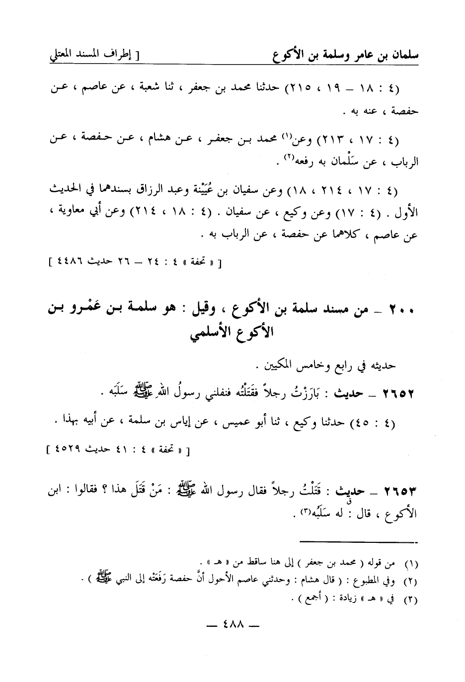 2652 - حديث: بارزت رجلا فقتلته فنفلني رسول الله صَلَّى اللَّهُ عَلَيْهِ وَسَلَّمَ سلبه (4: 45) حدثنا وكيع ثنا أبو عميس عن إياس بن سلمة عن أبيه بهذا