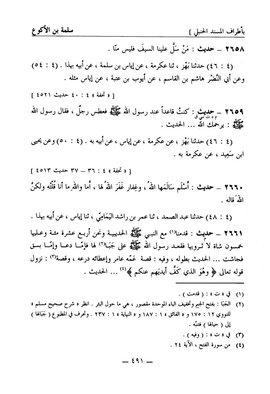 2658 - حديث: من سل علينا السيف فليس منا (4: 46) حدثنا بهز ثنا عكرمة عن إياس بن سلمة عن أبيه بهذا (4: 54) وعن أبي النضر هاشم بن القاسم عن أيوب بن عتبة عن إياس مثله