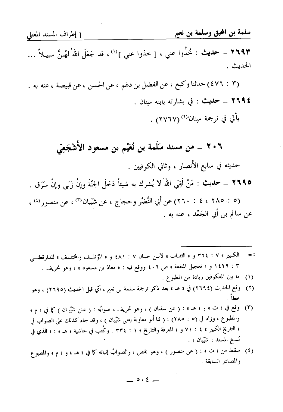 من مسند سلمة بن نعيم بن مسعود الأشجعي حديثه في سابع الأنصار وثاني الكوفيين