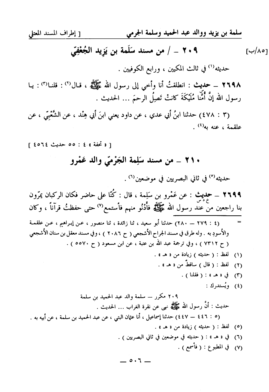 من مسند سلمة الجرمي والد عمرو حديثه في ثاني البصريين في موضعين