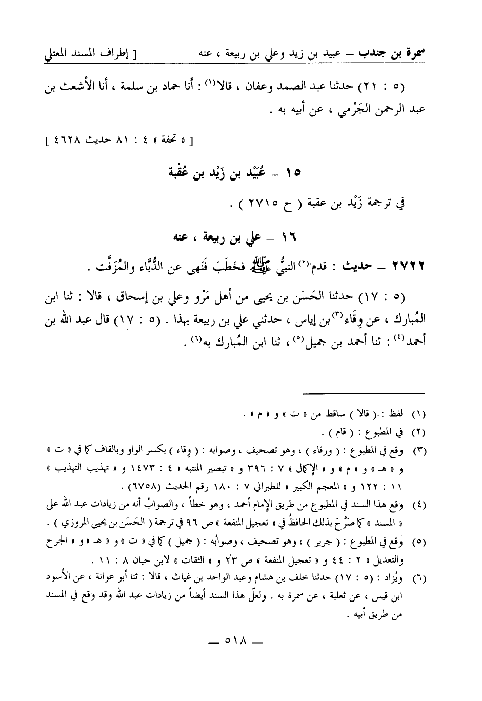 كتاب إطراف المسند المعتلي بأطراف المسند الحنبلي (اسم الجزء: 2)