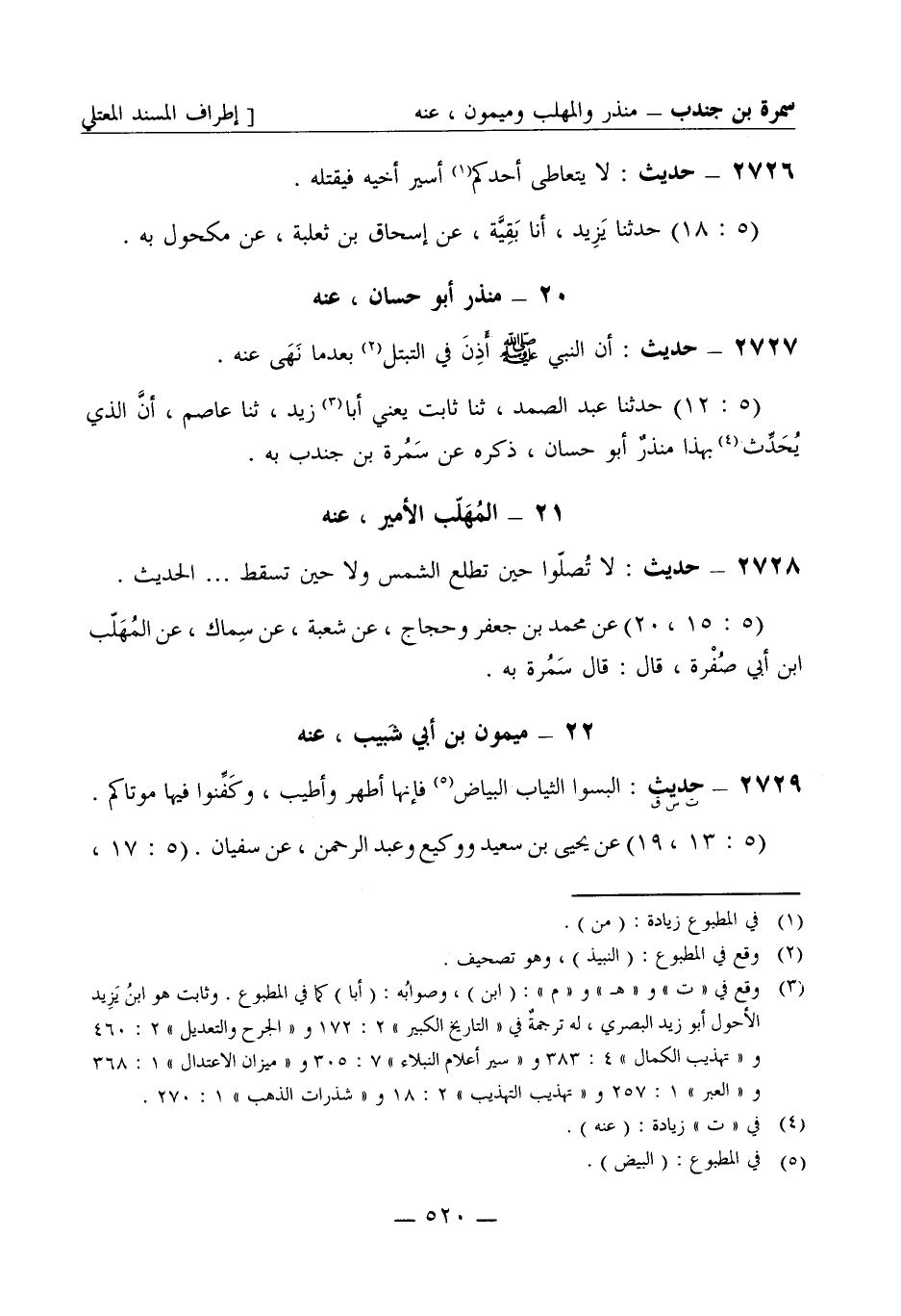 2728 - حديث: لا تصلوا حين تطلع الشمس ولا حسن تسقط ... الحديث. (5: 15، 20) عن محمد بن جعفر وحجاج، عن شعبة، عن سماك، عن المهلب بن أبي صفرة، قال: قال سمرة به.