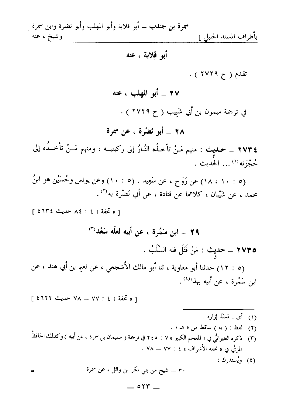 2735 -[ق] حديث: من قتل فله السلب. (5: 12) حدثنا أبو معاوية، ثنا أبو مالك الأشجعي، عن نعيم بن أبي هند، عن ابن سمرة، عن أبيه بهذا.