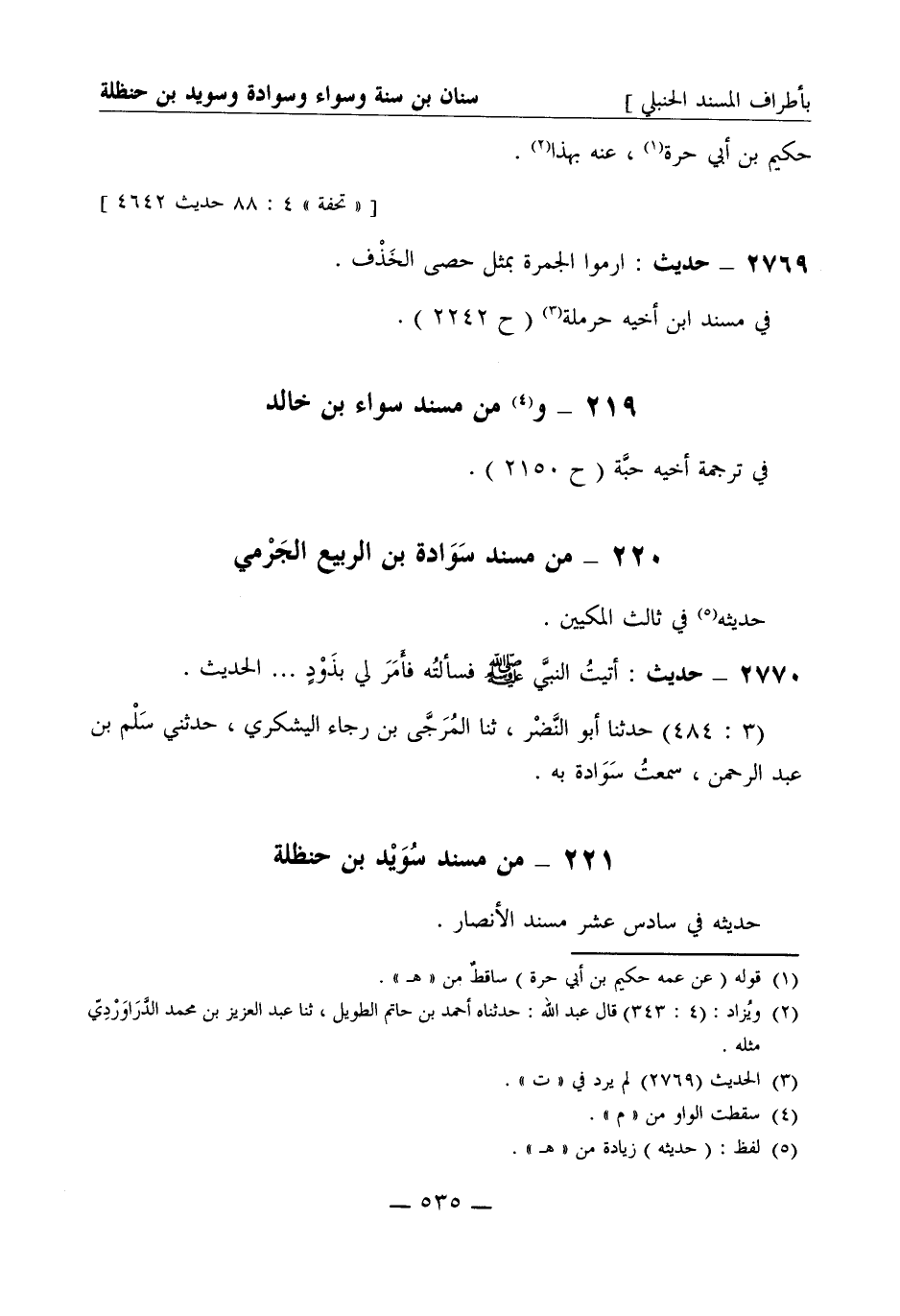 2769 - حديث: ارموا الجمرة بمثل حصى الخذف. في مسند ابن أخيه حرملة (ح 2242)
