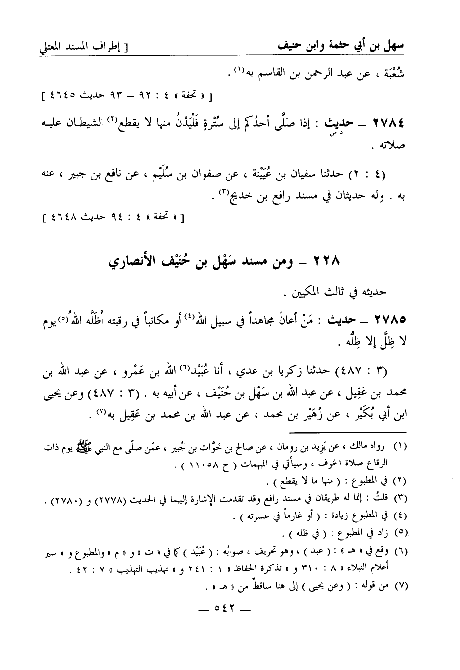 2784 -[د س] حديث: إذا صلى أحدكم إلى سترة فليدن منها لا يقطع الشيطان عليه صلاته. (4: 2) حدثنا سفيان بن عيينة، عن صفوان بن سليم، عن نافع بن جبير، عنه به. وله حديثان في مسند رافع بن خديج.