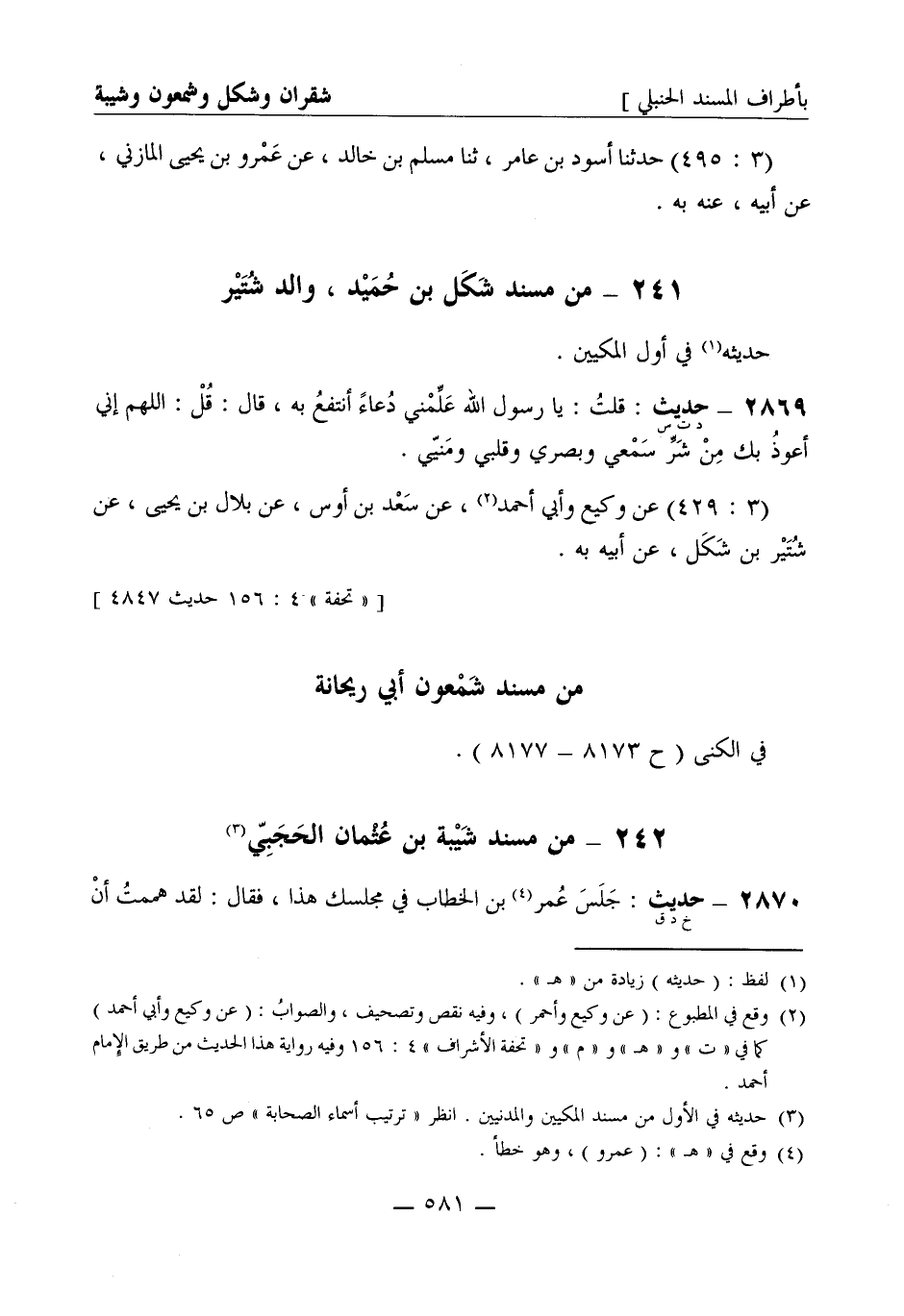من مسند شكل بن حميد، والد شتير حديثه في أول المكيين