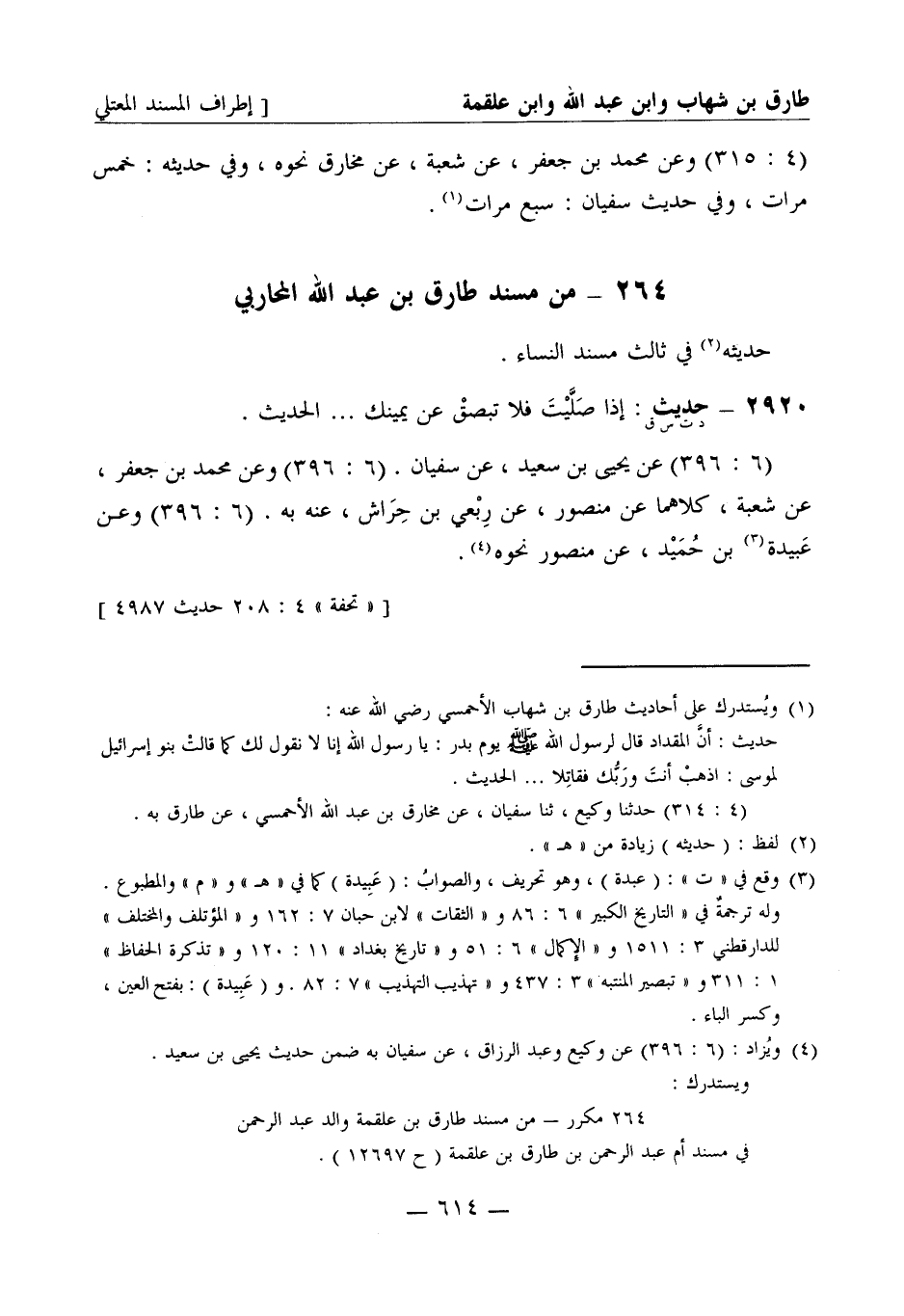 من مسند طارق بن عبد الله المحاربي حديثه في ثالث مسند النساء.