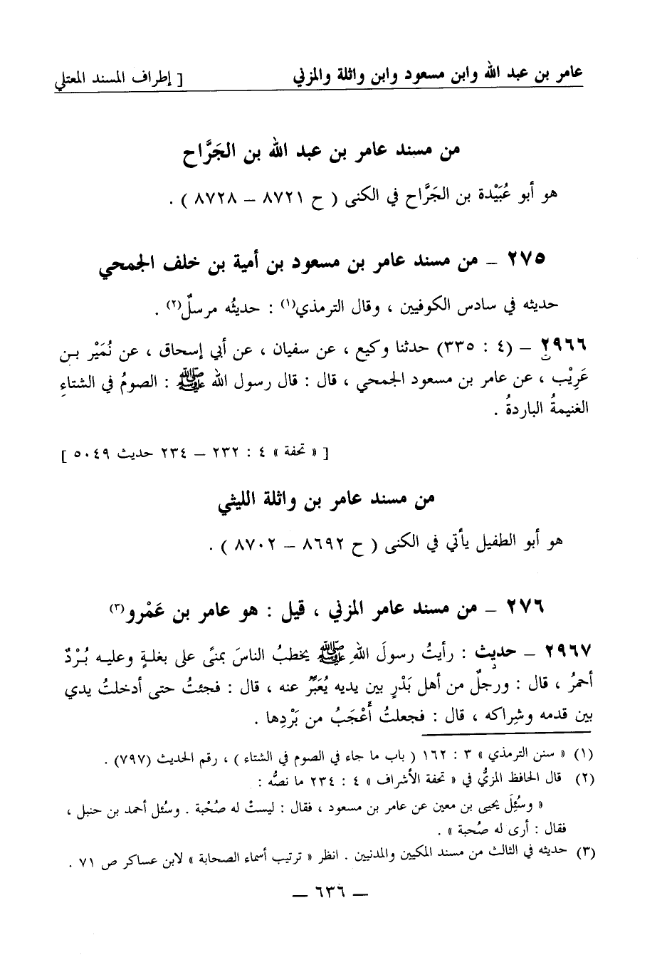 [تحفة 4: 232 - 234 حديث 5049] من مسند عامر بن واثلة الليثي هو أبو الطفيل يأتي في الكنى (ح 8692 - 8702) .