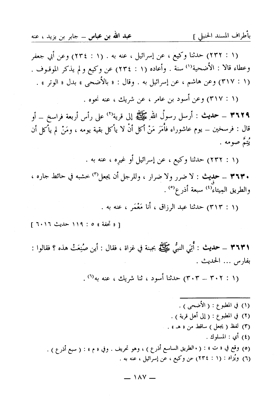 3629 - حديث: أرسل رسولُ الله صَلَّى اللَّهُ عَلَيْهِ وَسَلَّمَ إلى قرية على رأس أربعة فراسخ - أو قال: فرسخين - يوم عاشوراء فأَمَرَ مَنْ أكل أن لا يأكل بقية يومه، ومَنْ لم يأكل أن يُتِمَّ صومه. (1: 232) حَدَّثَنا وكيع، عن إسرائيل أو غيره، عنه به.