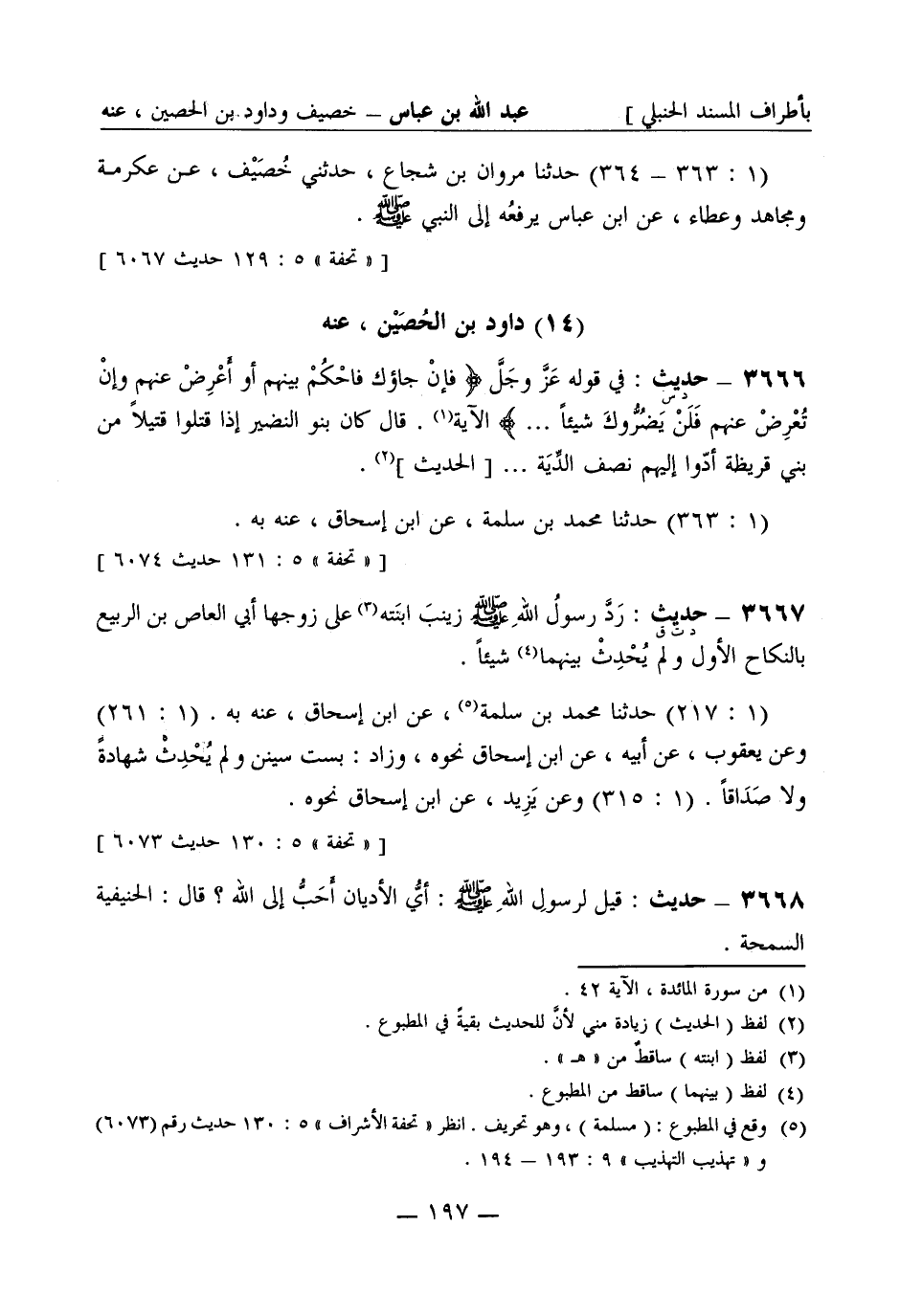 3666 -[د س] حديث: في قوله عَزَّ وجَلَّ فإن جاءوك فاحْكُمْ بينهم أو أَعْرِضْ عنهم وإن تُعْرِضْ عنهم فلن يَضُرُّوكَ شيئاً ... الآية. قال كان بنو النَّضير إذا قتلوا قتيلاً من بني قريظة أدّوا إليهم نصف الدِّيَة ... الحديث. (1: 363) حَدَّثَنا محمد بن سَلَمة عن ابن إسحاق عنه به.