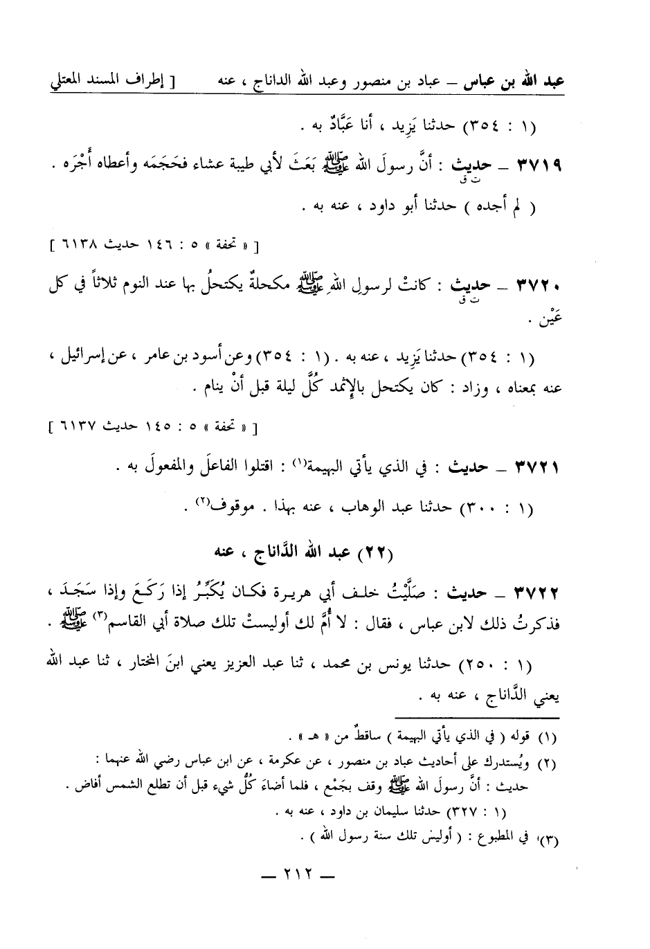 3722 - حديث: صَلَّيْتُ خلف أبي هريرة فكان يُكَبِّرُ إذا رَكَعَ وإذا سَجَدَ، فذكرتُ ذلك لابن عباس، فقال: لا أُمَّ لك أوليست تلك صلاة أبي القاسم صَلَّى اللَّهُ عَلَيْهِ وَسَلَّمَ. (1: 250) حَدَّثَنا يونس بن محمد، ثنا عبد العزيز يعني ابن المختار، ثنا عبد الله يعني الدَّاناج، عنه به.
