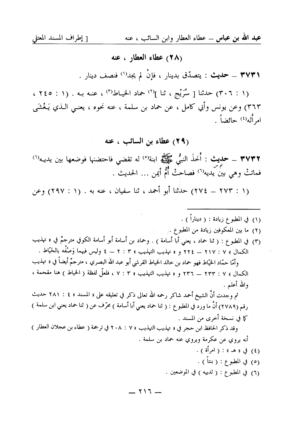 3731 - حديث: يتصدّق بدينار فإن لم يجد فنصف دينار. (1: 306) حَدَّثَنا سُرَيج، ثنا حمّاد الخياط، عنه به. (1: 245، 363) وعن يونس وأبي كامل عن حمّاد بن سَلَمة، عنه نحوه، يعني الذي يَغْشَى امرأتَه حائضاً.