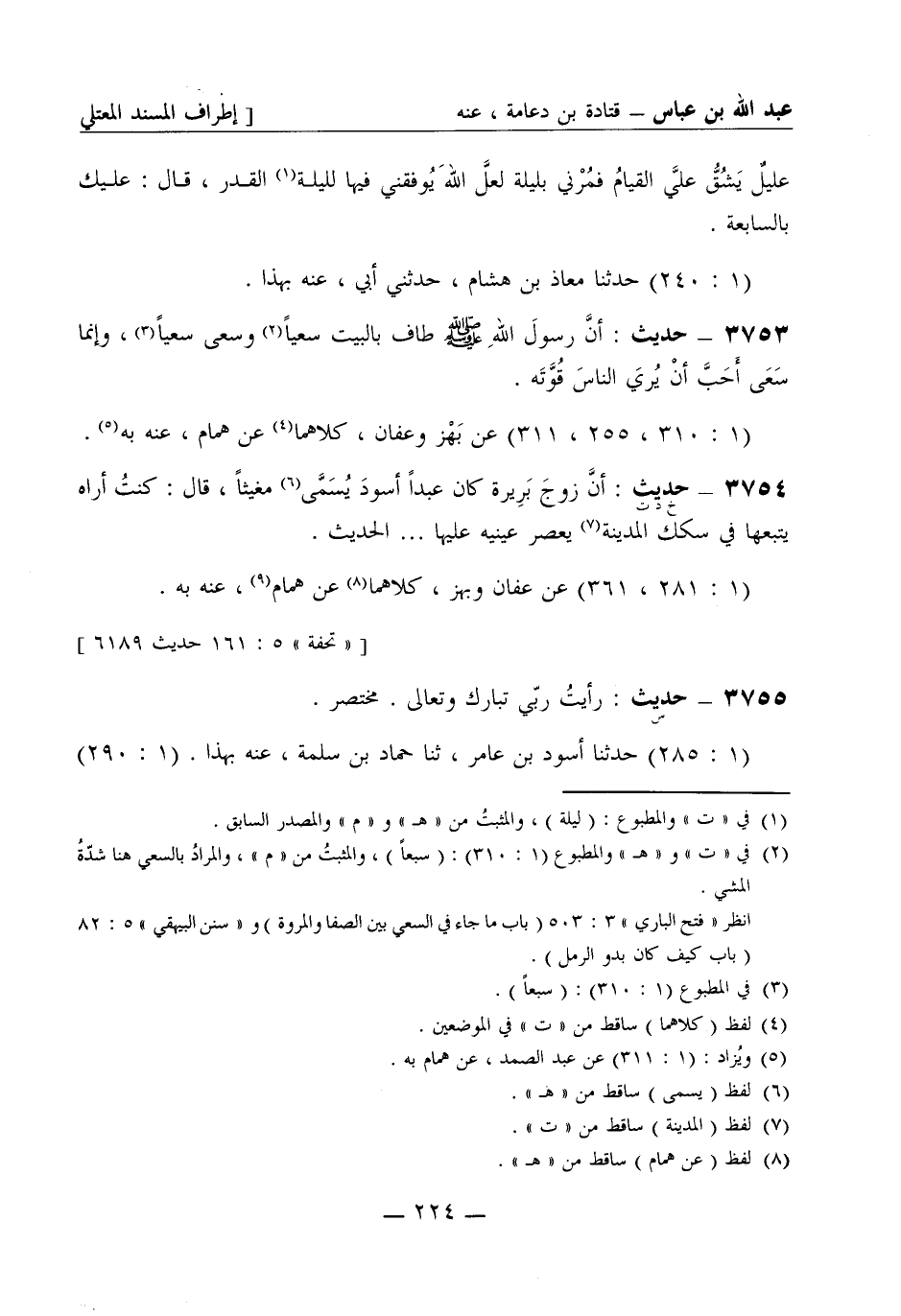 3755 -[س] حديث: رأيتُ رَبّي تبارك وتعالى. مختصر. (1: 285) حَدَّثَنا أسود بن عامر، ثنا حمّاد بن سَلَمة، عنه بهذا -[225]-. (1: 290) ثنا عفان، ثنا عبد الصمد بن كَيْسان، ثنا حمّاد بن سَلَمة مثله.