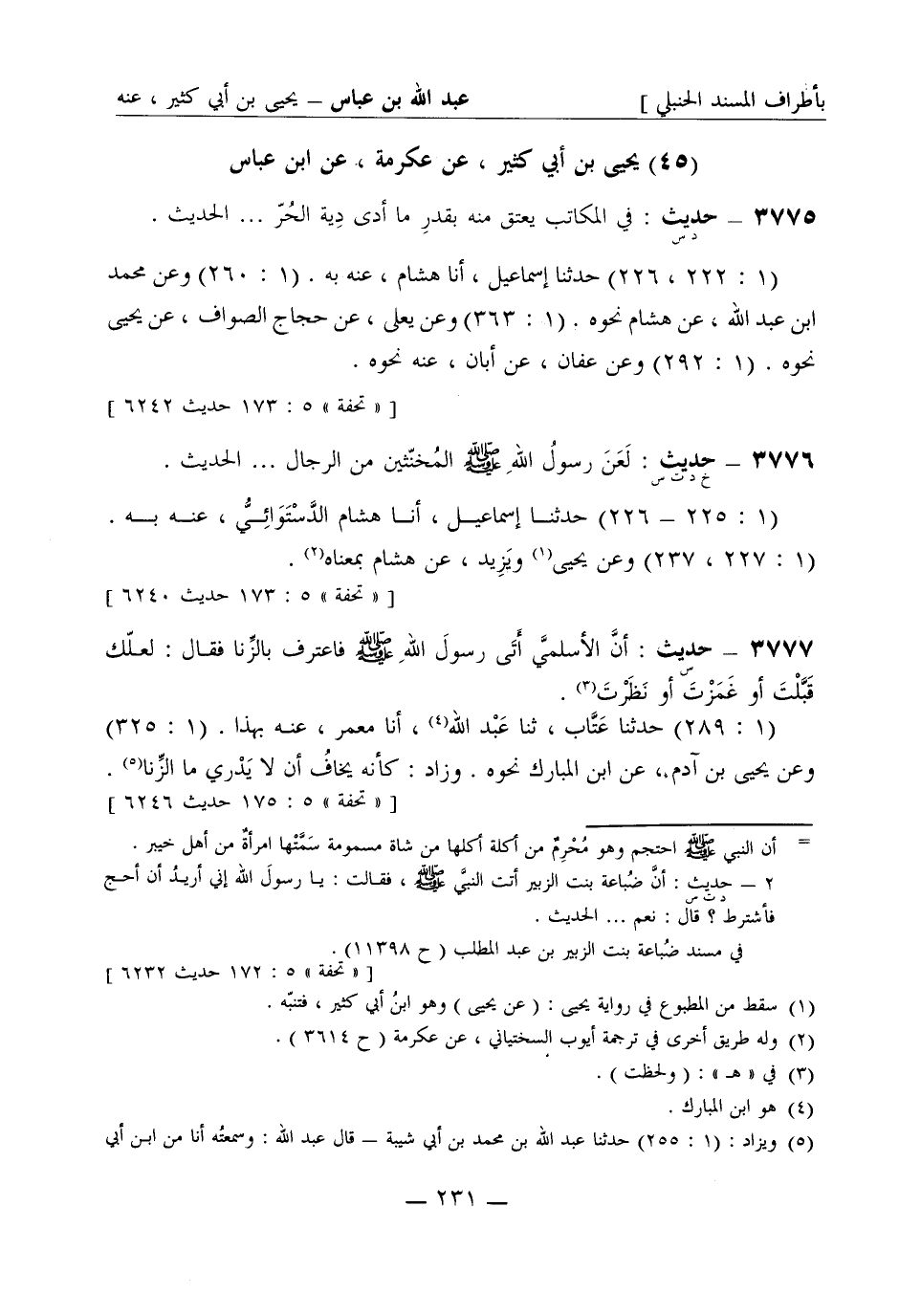 (45) يحيى بن أبي كثير، عن عكرمة، عن ابن عباس