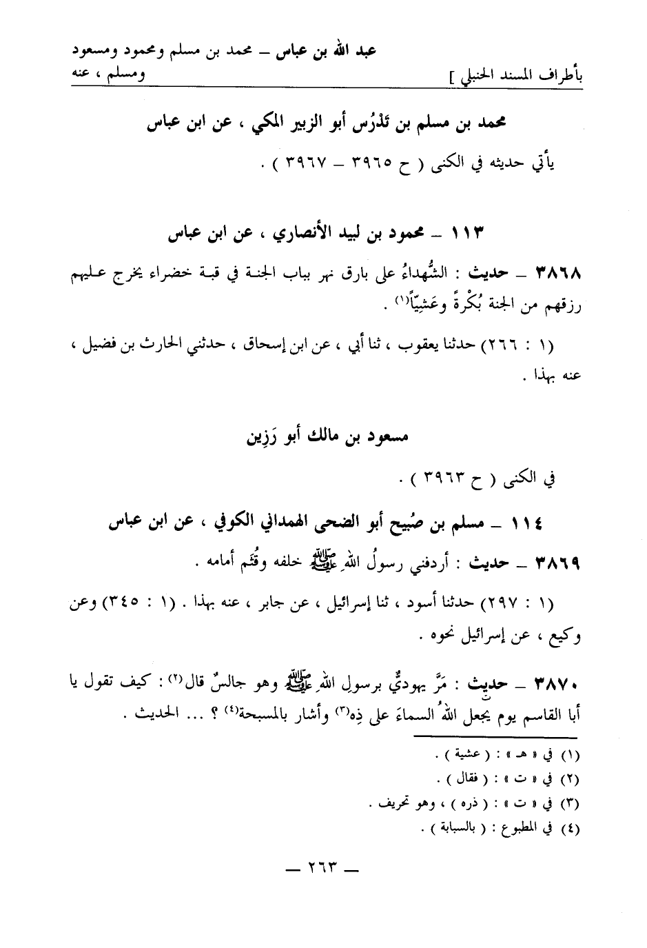 3867 - محمد بن مسلم بن تَدْرس أبو الزُّبَير المكي عن ابن عباس يأتي حديثه في الكنى (ح 3965 - 3967) .