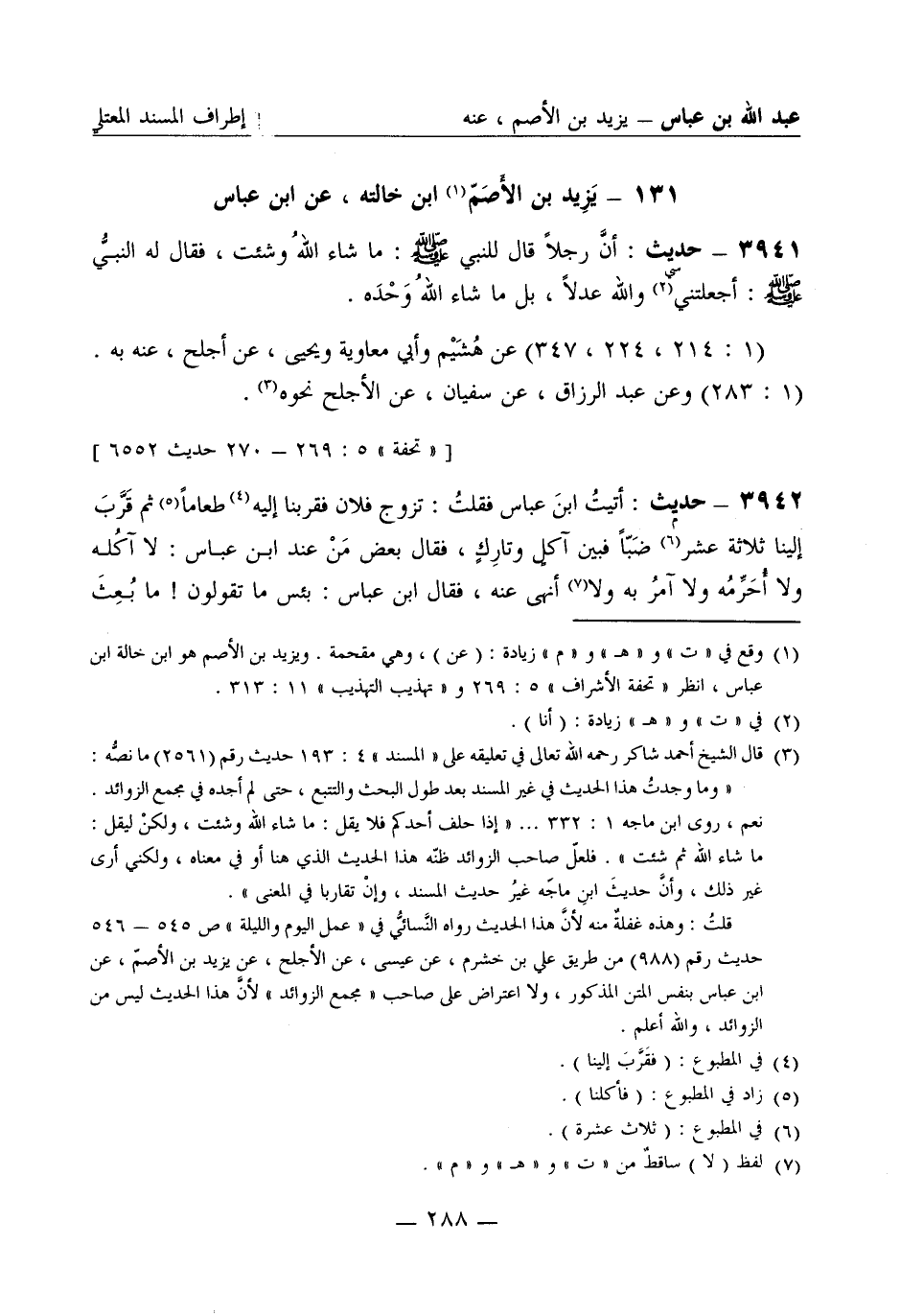 3941 -[م] حديث: أتيتُ ابن عباس فقلت: تَزَوَّج فلان فقربنا إليه طعاماً ثم قَرَّبَ إلينا ثلاثة عشر ضَبّاً فبين آكلٍ وتاركٍ، فقال بعض من عند ابن عباس: لا آكُله ولا أُحَرِّمُه ولا آمرُ به ولا أنهى عنه، فقال ابن عباس: بئس ما تقولون ما بُعِثَ -[289]- رسولُ الله صَلَّى اللَّهُ عَلَيْهِ وَسَلَّمَ إلا مُحِلاً ومُحَرِّماً، قُرِّبَ لرسول الله صَلَّى اللَّهُ عَلَيْهِ وَسَلَّمَ فمَدَّ يدَه ليأكل منه، فقالت ميمونة: إنه لحم ضَبّ فكَفَّ يدَه ... الحديث. (1: 326) حَدَّثَنا أسباط ثنا أبو إسحاق عنه به. (1: 294) وعن يونس عن عبد الواحد بن زياد عن الشَّيْبَانِيّ سليمان وهو أبو إسحاق نحوه. (1: 345) وعن وكيع عن جعفر بن بُرْقان عنه بمعناه.