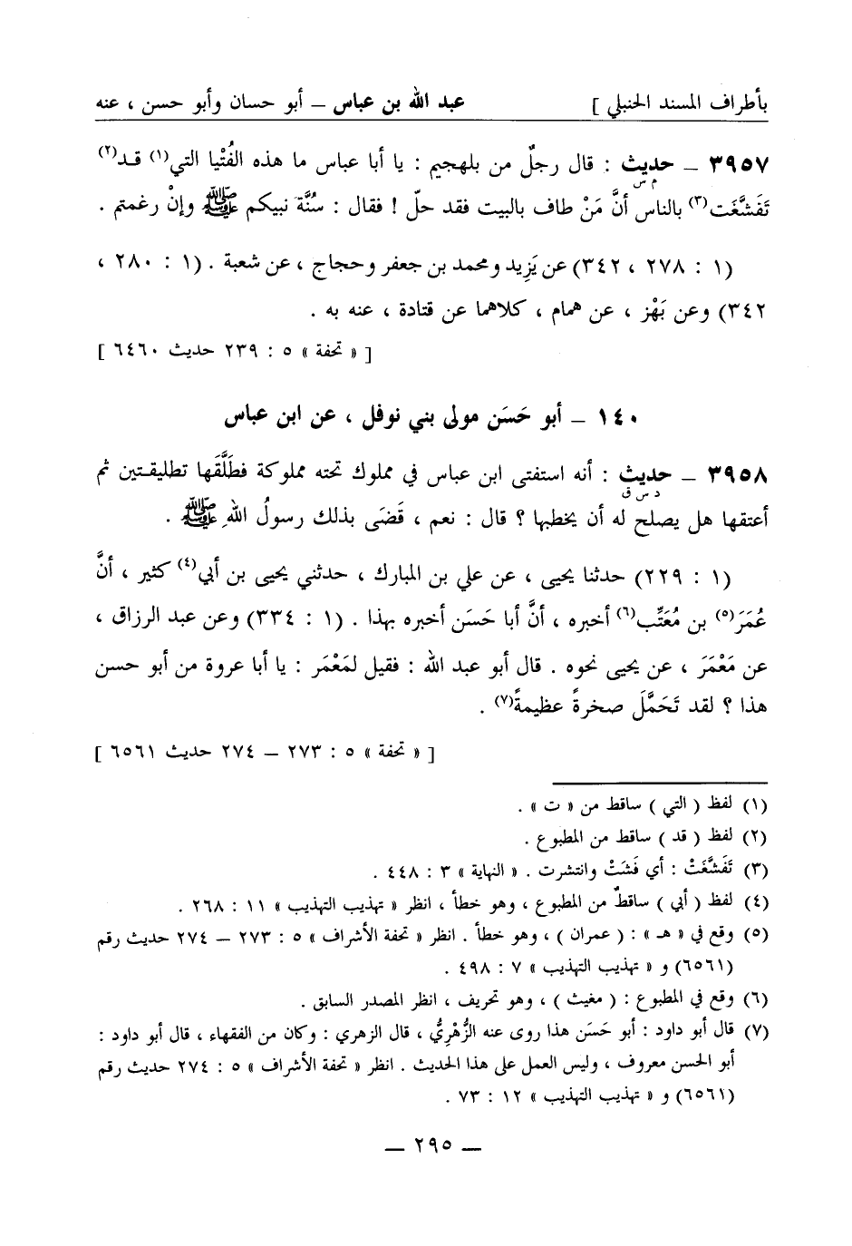3957 -[د س ق] حديث: أنه استفتى ابن عباس في مملوك تحته مملوكة فطَلَّقَها تطليقتين ثم أعتقها هل يصلح له أن يخطبها؟ قال: نعم قَضَى بذلك رسولُ الله صَلَّى اللَّهُ عَلَيْهِ وَسَلَّمَ. (1: 229) حَدَّثَنا يحيى عن علي بن المبارك، حَدَّثَني يحيى بن أبي كثير أنَّ عمر بن مُعَتِّب أخبره، أنَّ أبا حَسَن أخبره بهذا. (1: 334) وعن عبد الرزاق، عن مَعْمَر، عن يحيى نحوه. قال أبو عبد الله: فقيل لمَعْمَر: يا أبا عروة من أبو حَسَن هذا؟ لقد تحمَّلَ صخرةً عظيمة.