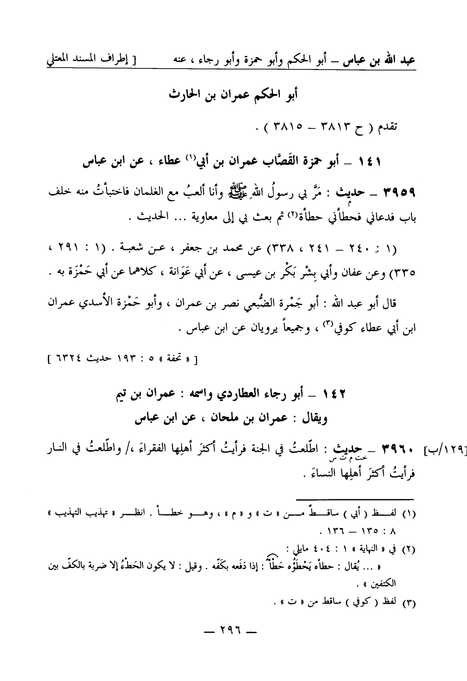 3959 -[خت م ت س] حديث: اطّلعتُ في الجَنَّة فرأيتُ أكثرَ أهلِها الفقراء، واطّلعتُ في النَّار فرأيتُ أكثرَ أهلِها النِّساء -[297]-. (1: 234) حَدَّثَنا وكيع حَدَّثَني حمّاد بن نجيح سمعت من أبي رجاء بهذا. (1: 359) وعن إسماعيل عن أيوب عن أبي رجاء نحوه.
