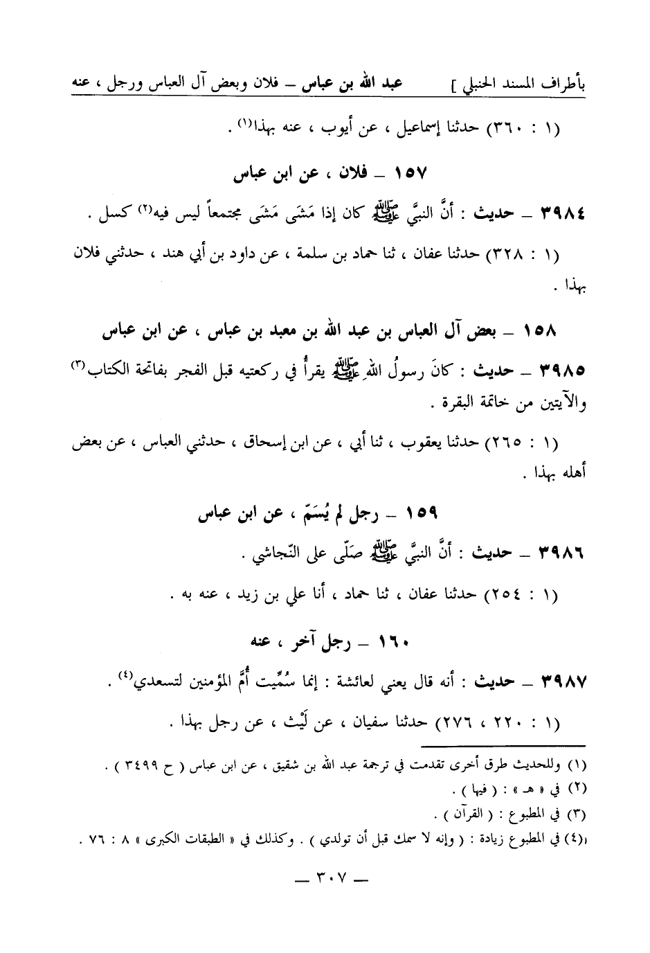 3986 - حديث: أنه قال يعني لعائشة: إنما سُمِّيت أُمَّ المؤمنين لتسعدي. (1: 220، 276) حَدَّثَنا سفيان عن لَيْث عن رجل بهذا. -[308]- قلت: أخرجه ابن سعد عن أحمد بن يونس عن زُهَير بن معاوية عن لَيْث بن أبي سُلَيْم عن عبد الرحمن بن سابط عن ابن عباس أتمّ منه فلعلّ الرجل الذي أُبْهِمَ في رواية ابن عُيَيْنة هو لَيْث بن أبي سُلَيْم وسقط من السند ذِكْرُ عبد الرحمن بن سابط.