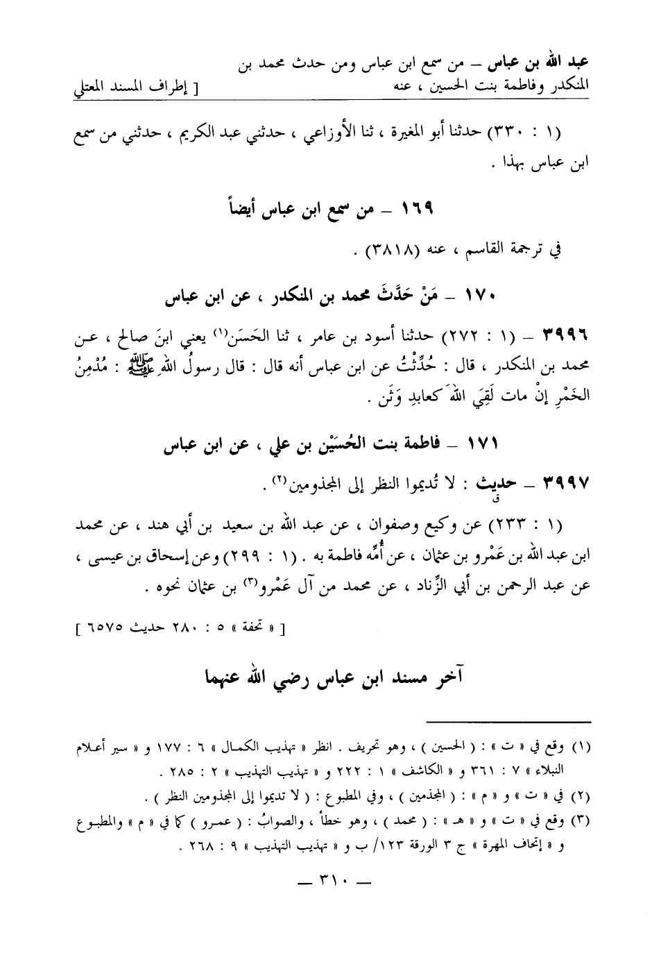 [تحفة 5: 280 حديث 6575] . آخر مسند ابن عباس رضي الله عنهما
