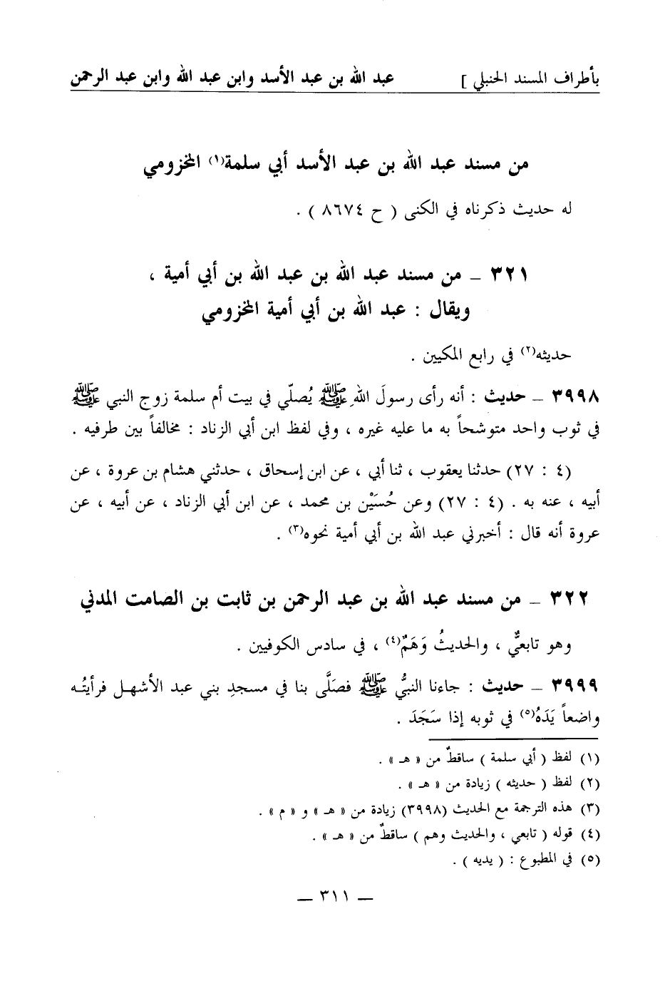 3997 - من مسند عبد الله بن عبد الأسد أبي سَلَمة المخزومي له حديث ذكرناه في الكنى (ح 8674)