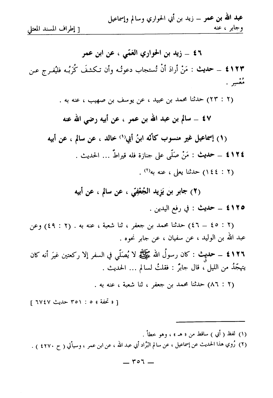 (1) إسماعيل غير منسوب كأنّه ابن أبي خالد، عن سالم، عن أبيه
