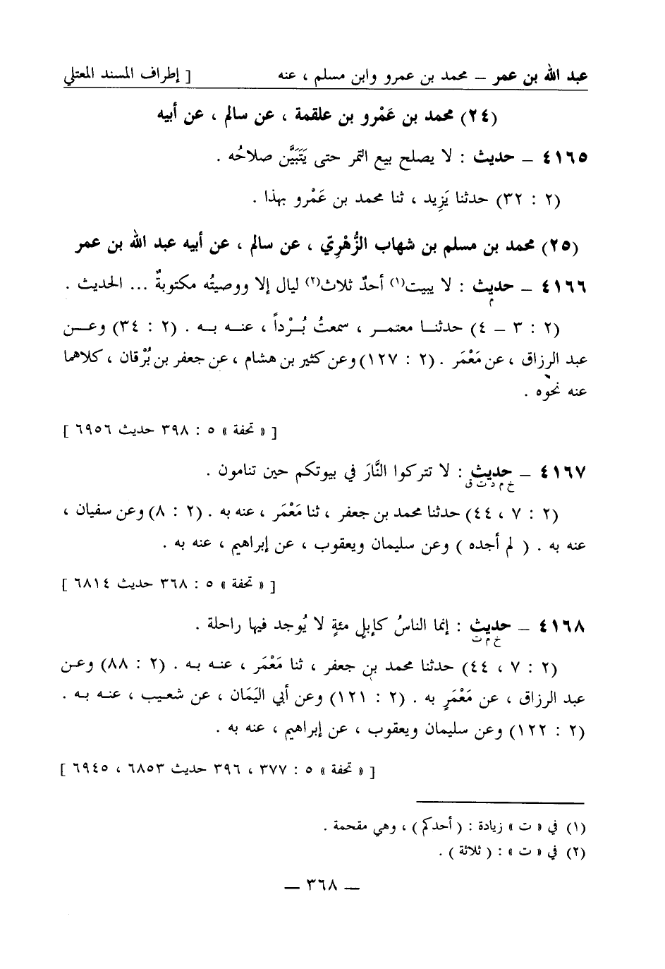 (25) محمد بن مسلم بن شهاب الزُّهْرِيُّ عن سالم، عن أبيه عبد الله بن عمر