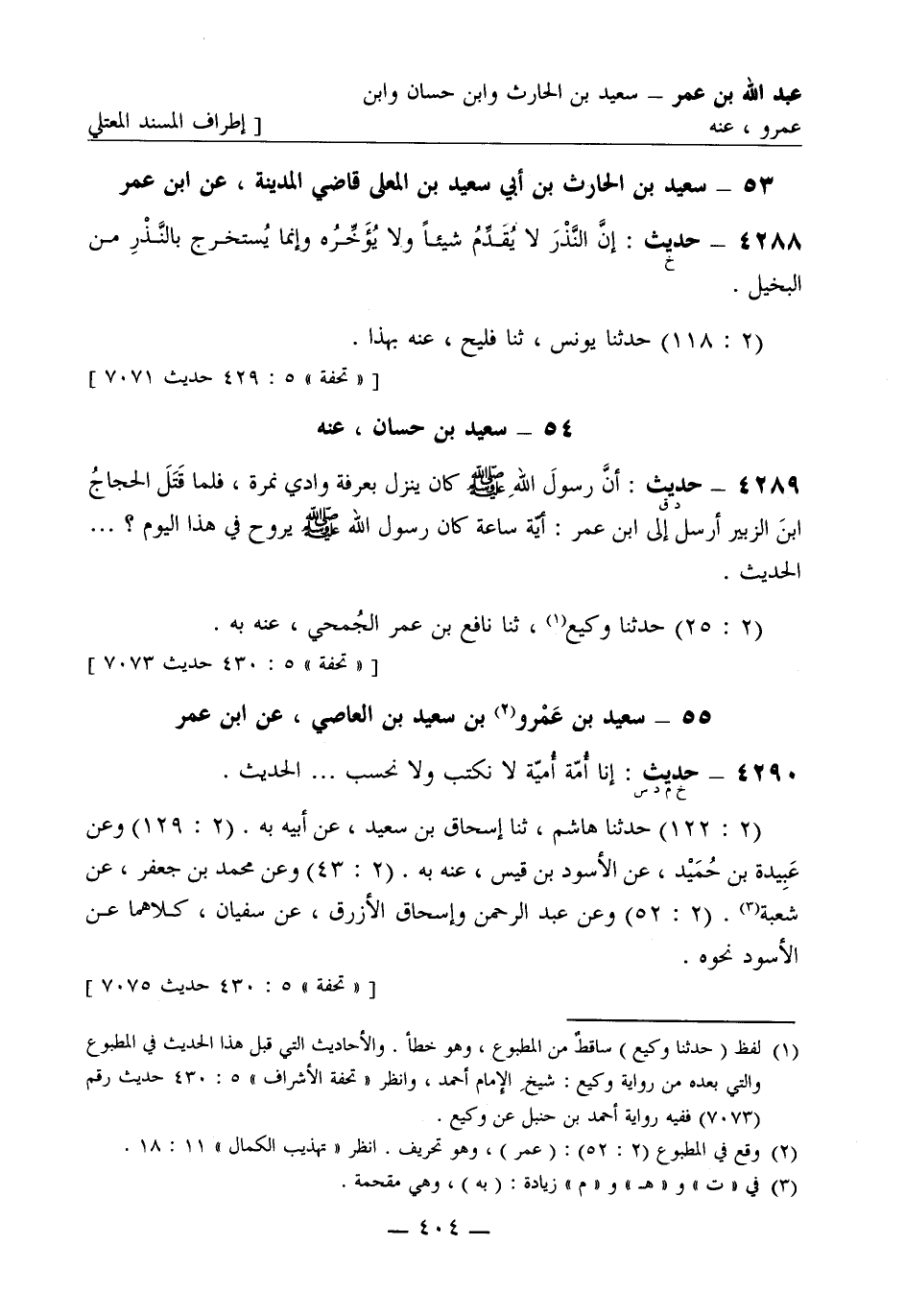 4290 -[خ م د س] حديث: إنا أُمّة أُميّة لا نكتب ولا نحسب ... الحديث. (2: 122) حَدَّثَنا هاشم ثنا إسحاق بن سعيد، عن أبيه به. (2: 129) وعن عَبِيدة بن حُمَيد، عن الأسود بن قيس عنه به. (2: 43) وعن محمد بن جعفر، عن شُعبة. (2: 52) وعن عبد الرحمن وإسحاق الأزرق، عن سفيان كلاهما عن الأسود نحوه.