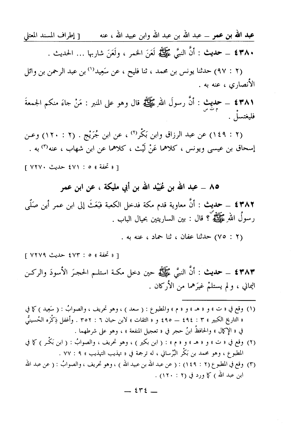 4383 - حديث: أنَّ النبيَّ صَلَّى اللَّهُ عَلَيْهِ وَسَلَّمَ حين دخل مكة استلم الحَجَرَ الأسودَ والركن اليماني ولم يستلمْ غيرَهما من الأركان -[435]-. (2: 141 - 142) حَدَّثَنا ابن نُمَير، ثنا حجاج، عن عطاء وابن أبي مُلَيْكَة ونافع، عن ابن عمر به.
