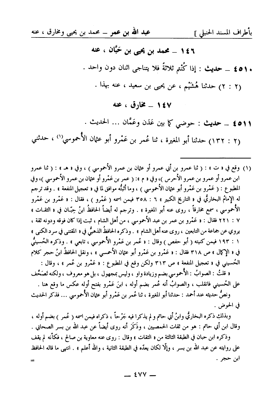 4510 - حديث: إذا كنتم ثلاثةً فلا يتناجى اثنان دون واحد. (2: 2) حَدَّثَنا هُشَيم عن يحيى بن سعيد، عنه بهذا.