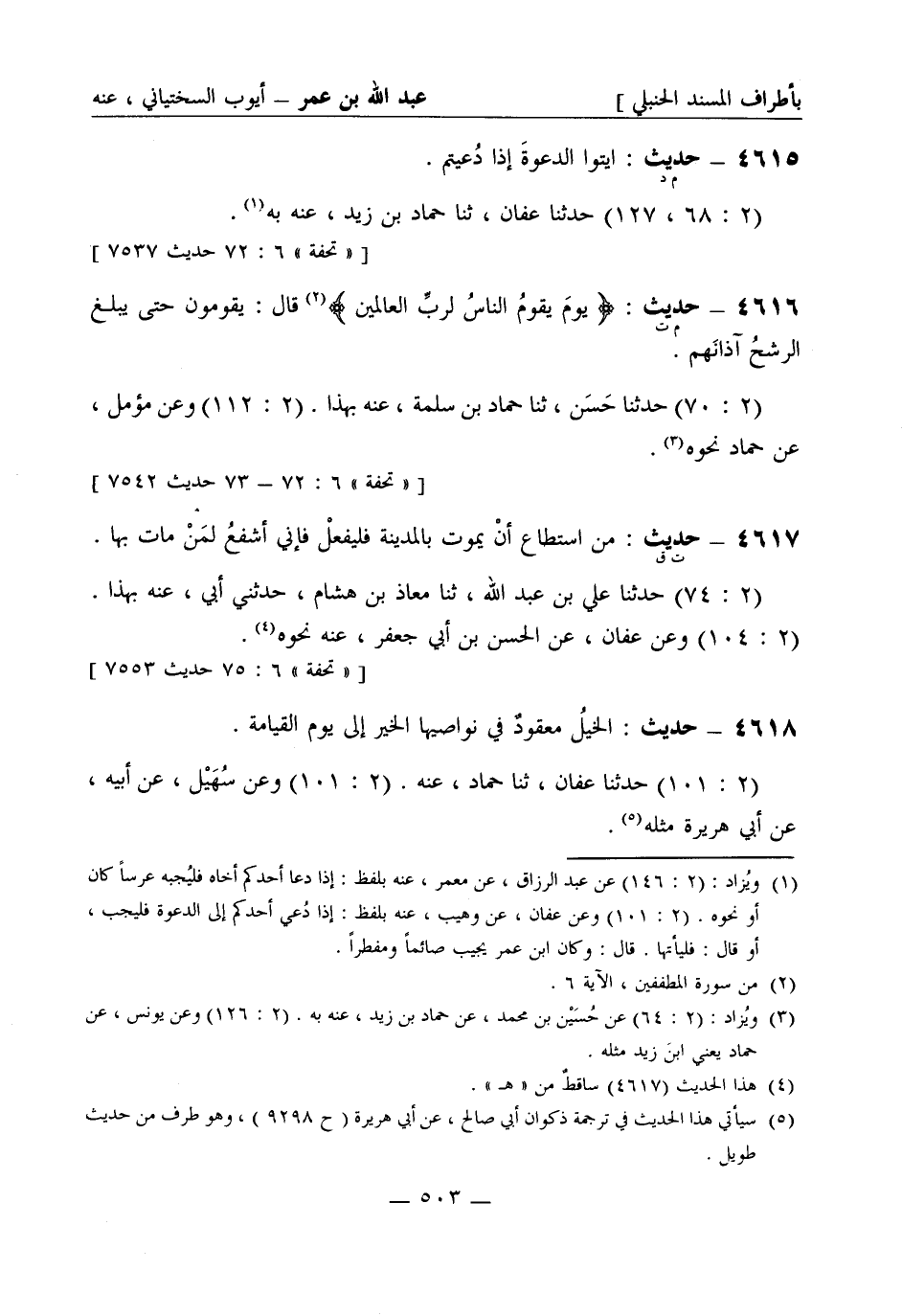 4615 -[م د] حديث: ايتوا الدعوةَ إذا دُعيتم. (2: 68، 127) حَدَّثَنا عفان ثنا حمّاد بن زيد، عنه به.