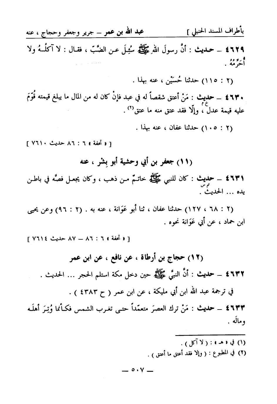 4632 - حديث: من ترك العصرَ متعمّداً حتى تغرب الشَّمس فكأنما وُتِرَ أهلَه ومالَه -[508]-. (2: 27، 76) حَدَّثَنا يزيد بن هارون عنه بهذا. (2: 13) وعن أبي معاوية، عنه نحوه.
