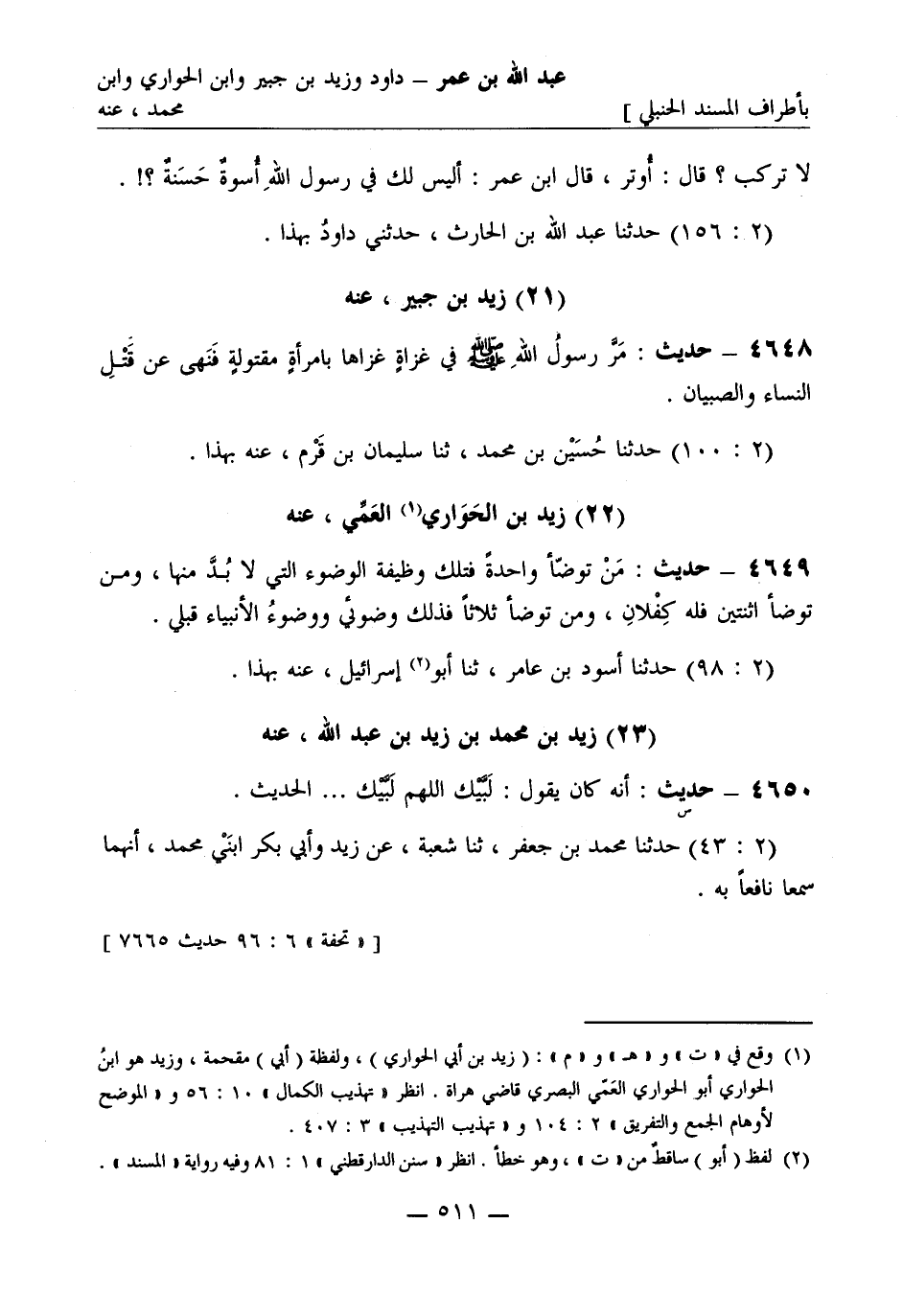 (23) زيد بن محمد بن زيد بن عبد الله، عنه