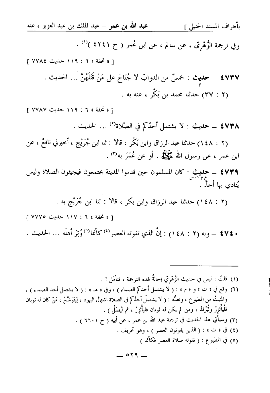 4740 - وبه (2: 148) إنَّ الذي تفوته العصر كأنما وُتِرَ أهلَه ... -[530]- الحديث.