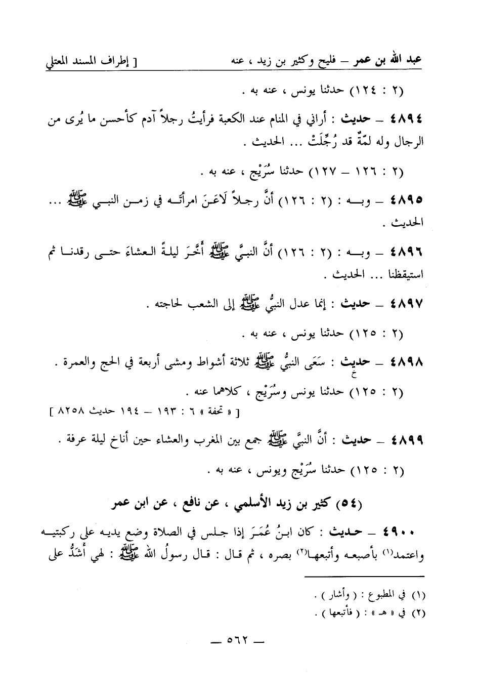 (54) كثير بن زيد الأسلمي، عن نافع، عن ابن عمر