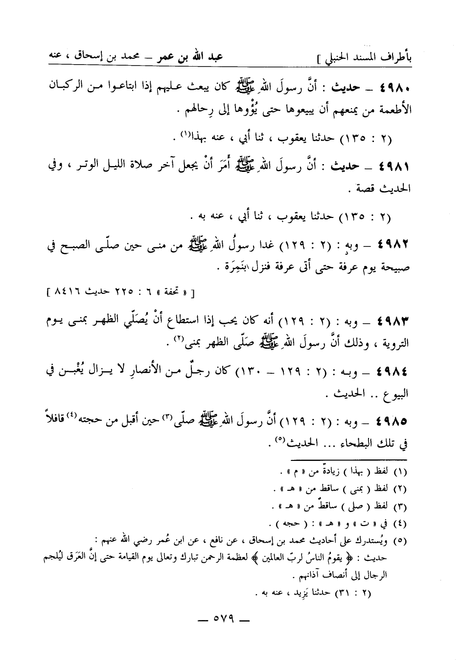 4985 - وبه: (2: 129) أنَّ رسولَ الله صَلَّى اللَّهُ عَلَيْهِ وَسَلَّمَ صَلّى حين أقبل من حجّته قافلاً في تلك البطحاء ... الحديث.