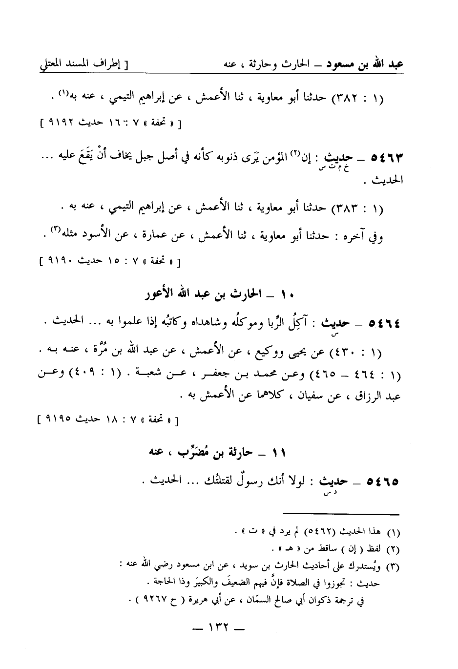5464 -[س] حديث آكل الربا وموكله وشاهداه وكاتبه إذا علموا به ... الحديث. (1: 430) عن يحيى ووكيع، عن الأعمش، عن عبد الله بن مرة عنه به. (1: 464 - 465) وعن محمد بن جعفر، عن شعبة (1: 409) وعن عبد الرزاق، عن سفيان، كلاهما عن الأعمش به