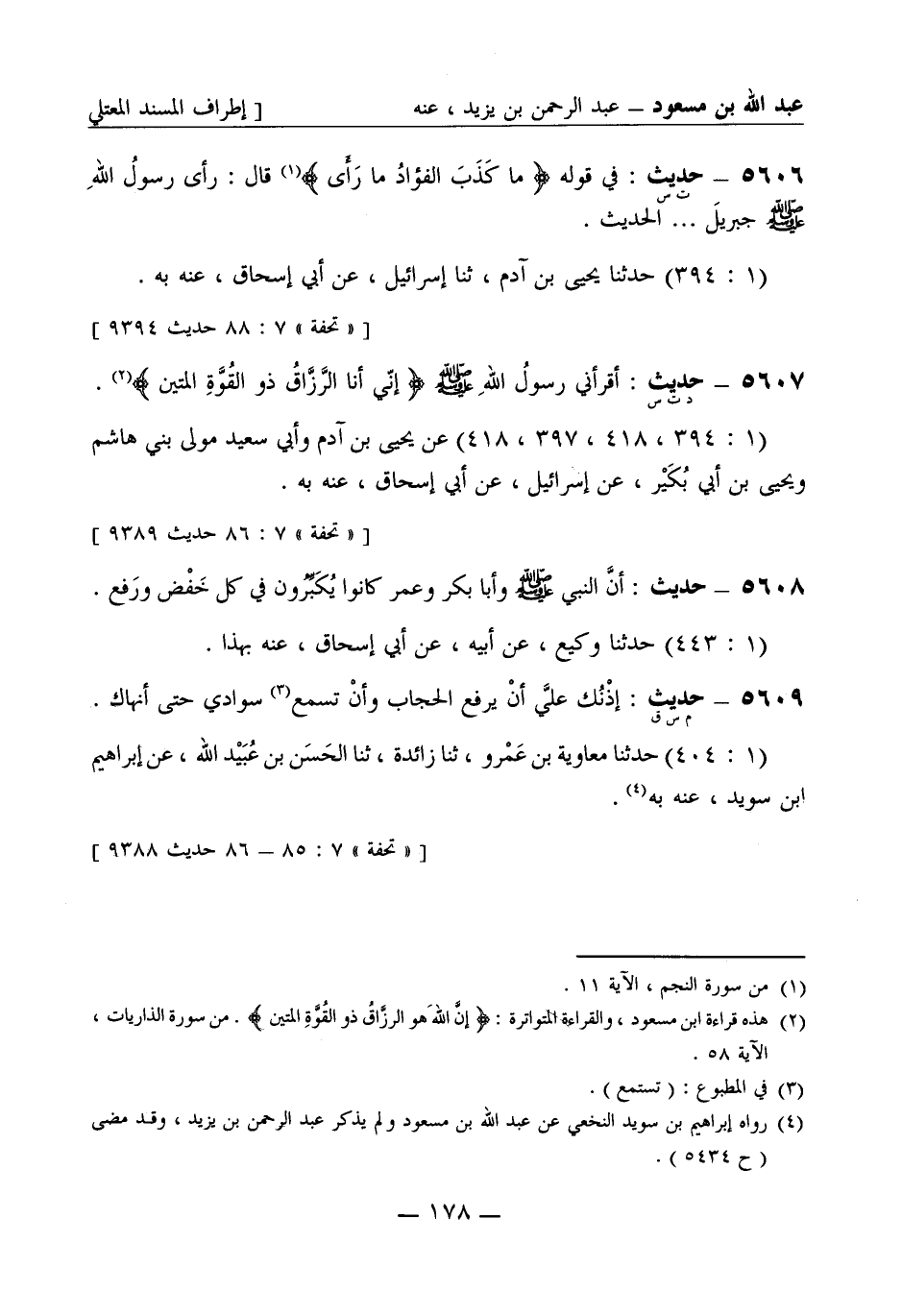 5606 -[ت س] حديث في قوله ما كذب الفؤاد ما رأى قال رأى رسول الله صَلَّى اللَّهُ عَلَيْهِ وَسَلَّمَ جبريل ... الحديث. (1: 394) حدثنا يحيى بن آدم، ثنا إسرائيل، عن أبي إسحاق عنه به.
