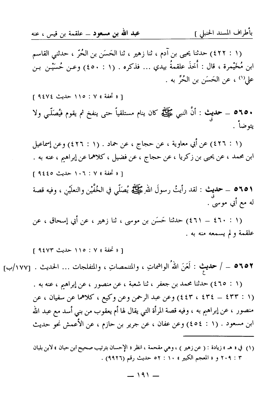 [تحفة 7: 108 - 109، 103 - 104 حديث 9450، 9431]