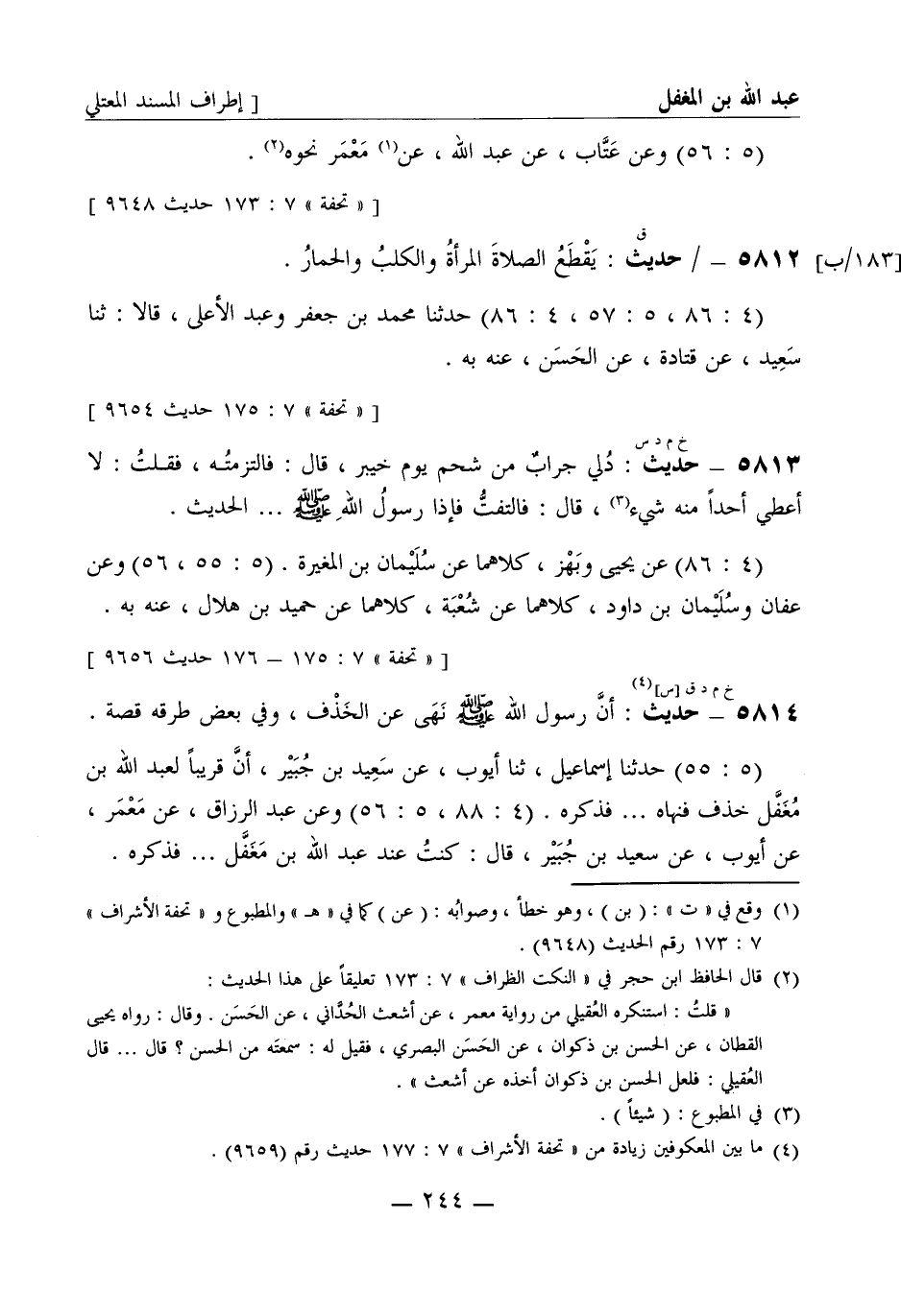 [تحفة 7: 176، 177، 178 حديث 9657، 9659، 9663]