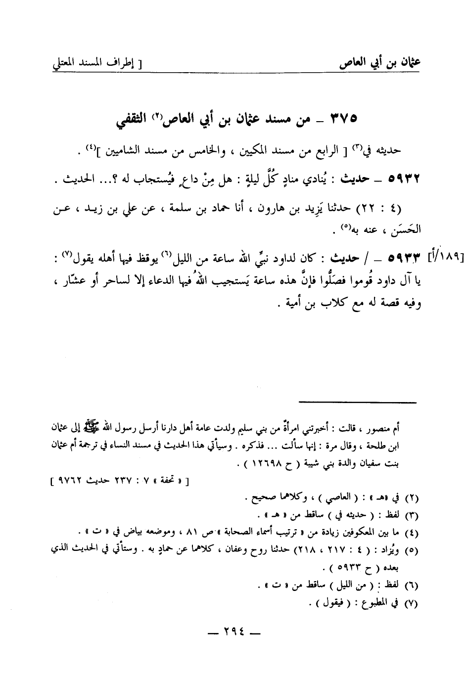 من مسند عثمان بن أبي العاص الثقفي حديثه في [الرابع من مسند المكيين والخامس من مسند الشاميين]
