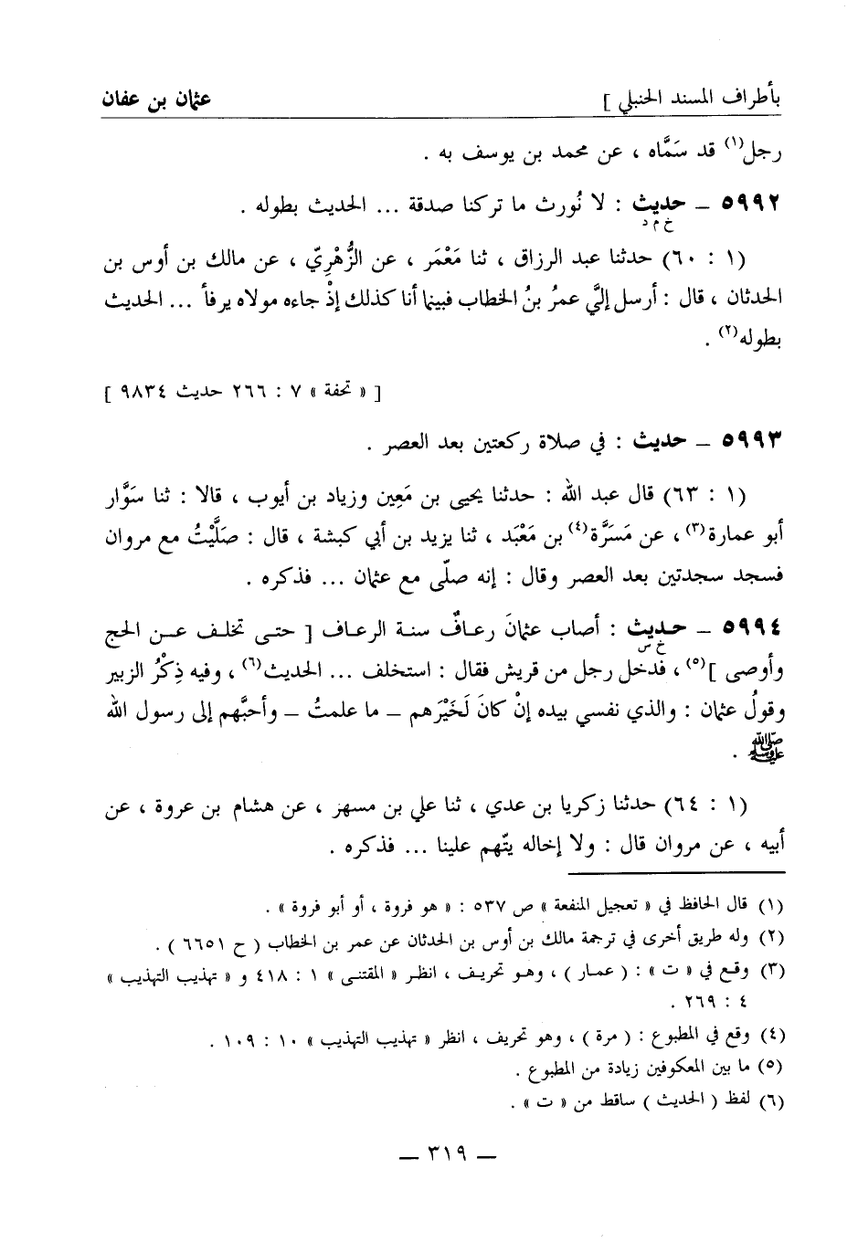 5992 -[خ م د] حديث لا نورث ما تركنا صدقة ... الحديث بطوله. (1: 60) حدثنا عبد الرزاق، ثنا معمر، عن الزهري، عن مالك بن أوس بن الحدثان، قال: أرسل إلي عمر بن الخطاب فبينما أنا كذلك إذ جاءه مولاه يرفأ..... الحديث بطوله.