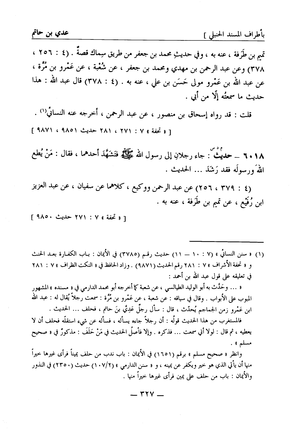 6018 -[م د س] حديث جاء رجلان إلى رسول الله صَلَّى اللَّهُ عَلَيْهِ وَسَلَّمَ فتشهد أحدهما فقال من يطع الله ورسوله فقد رشد ... الحديث. (4: 379، 256) عن عبد الرحمن ووكيع، كلاهما عن سفيان، عن عبد العزيز بن رفيع، عن تميم بن طرفة عنه به.